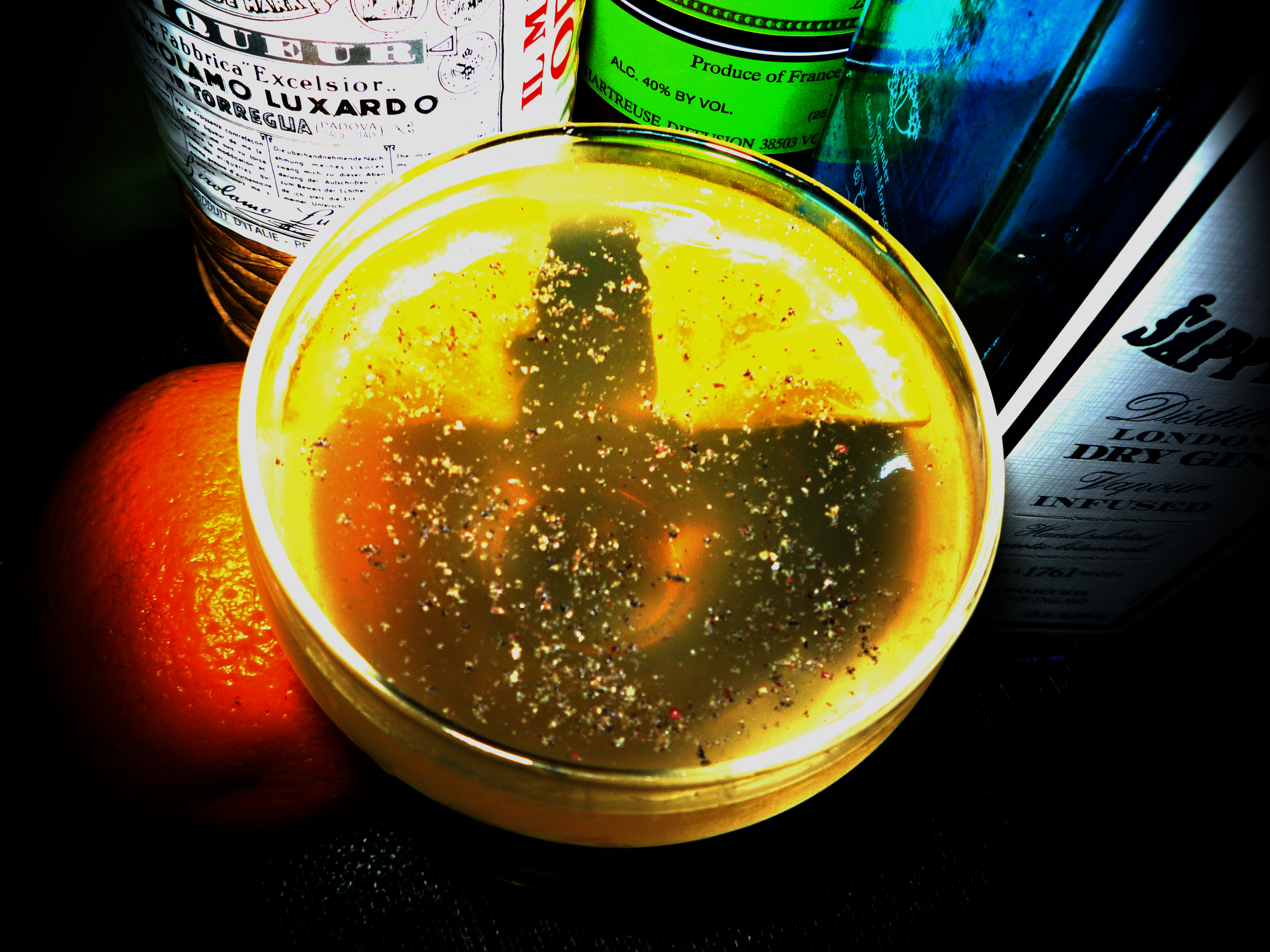 We added the orange slice and additional fresh ground pepper as a garnish mainly for the colors. We named this drink the Bengal Tiger because of the yellow and black colors or the drink and because it has a serious bite. In addition, South India, including the region of Bengal, is one of the areas where black pepper is native.