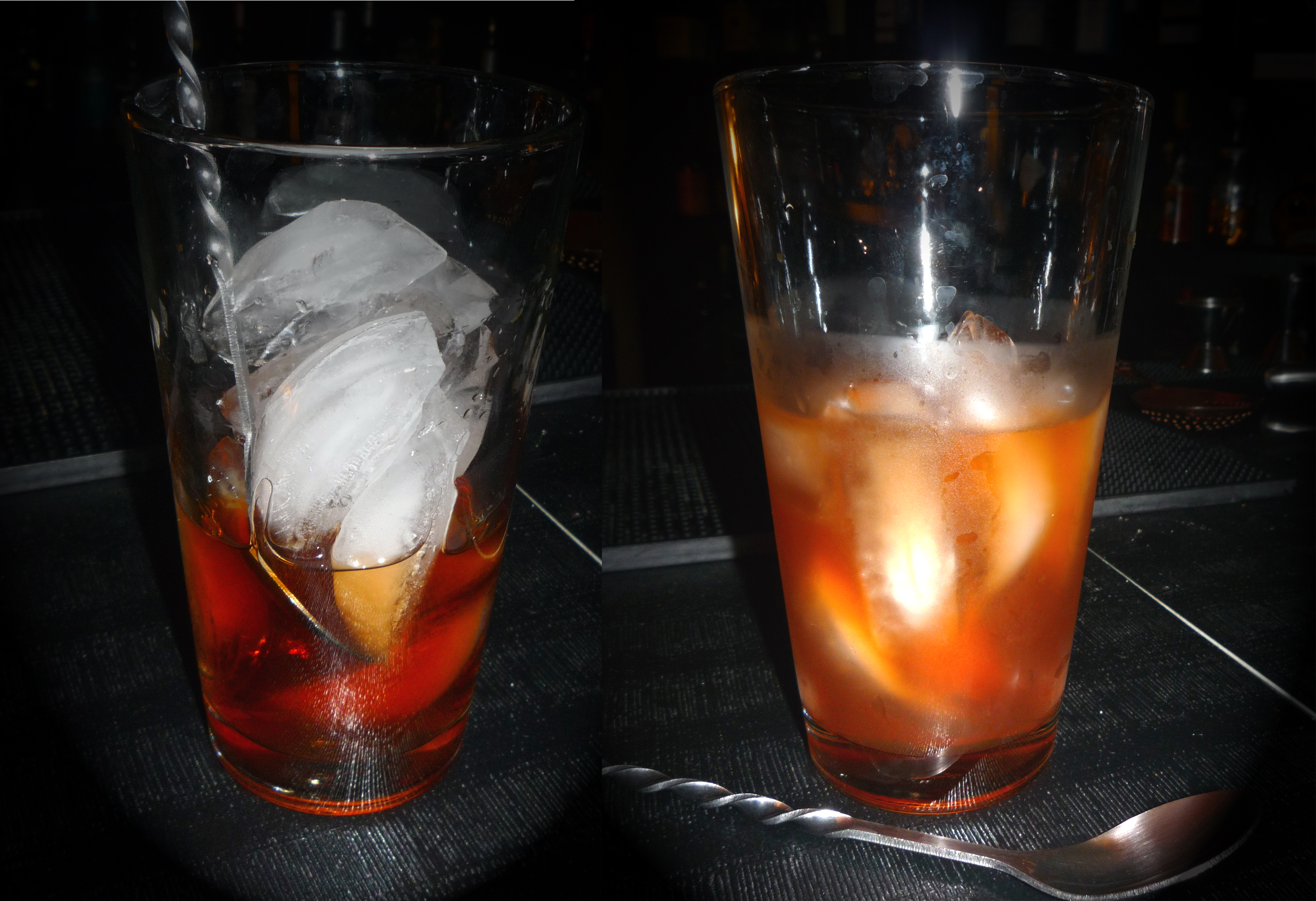 First of all, some people seem to think that shaking dilutes the drink more than stirring. That’s just silly. It can dilute faster perhaps, but the amount of dilution is purely due to how long you stir/shake and the amount of force used in either method. The main difference is that shaking makes the drink rather cloudy and also creates ice shards, which you may desire in some drinks but not in others.